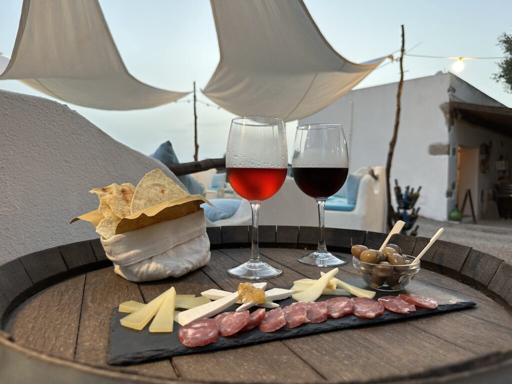 L’esperienza inizia con la visita ai vigneti a piede franco, limitrofi alla cantina: vigneti giovani e secolari, allevati ad alberello,