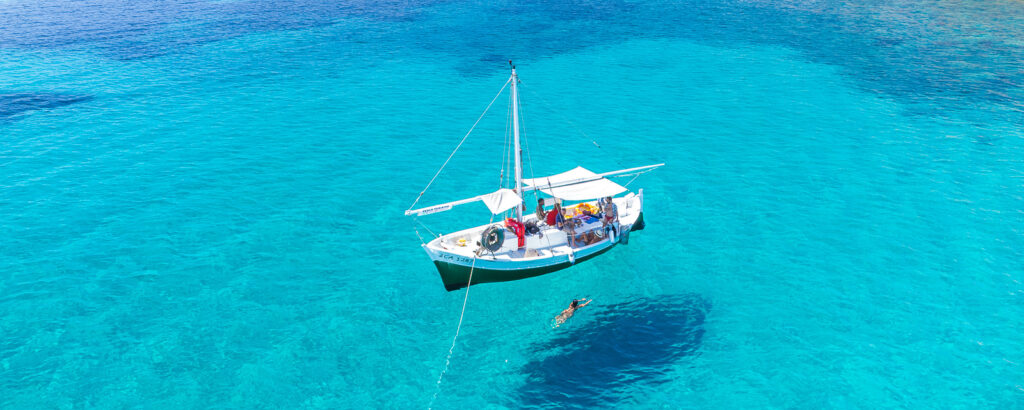 Salpiamo ogni giorno dal molo di Portopino, direzione: le acque incontaminate dell’isola di Sant’Antioco. Davanti a noi solo natura selvaggia,